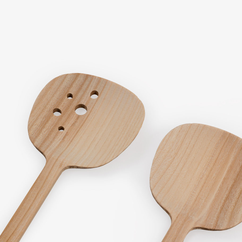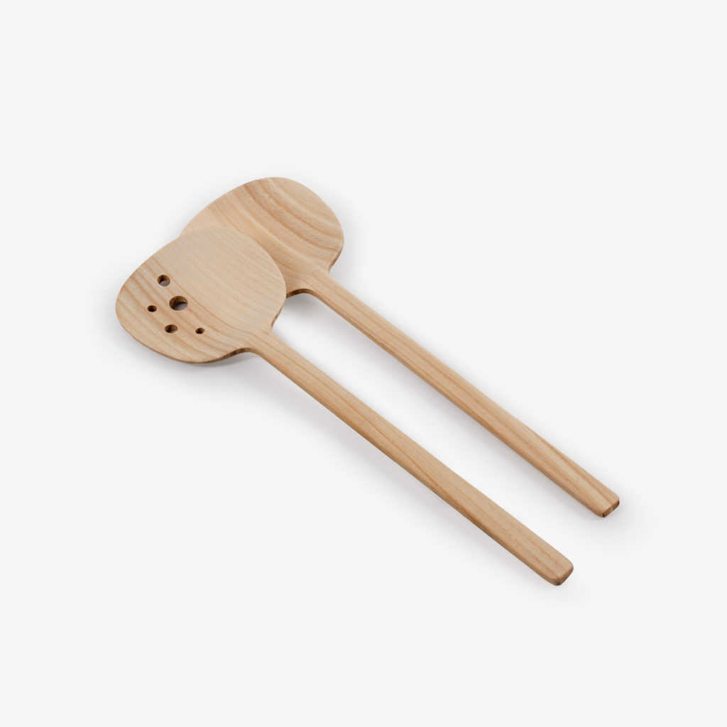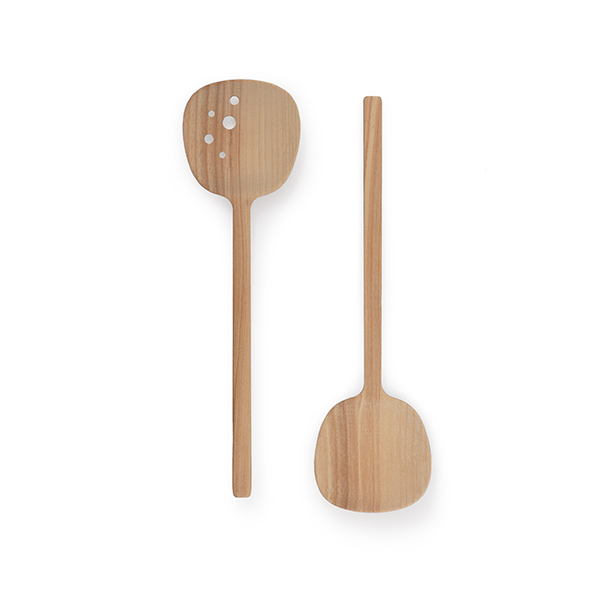 “The bowl of the spoon of salad servers should be more generous in proportion compared to a normal spoon in order to grasp salad better. Wood adds a texture that prevents the salad from slipping out of grip. For added functionality one of the bowls have drilled holes to allow excess dressing or rinse water to escape,” says Mårten Claesson.