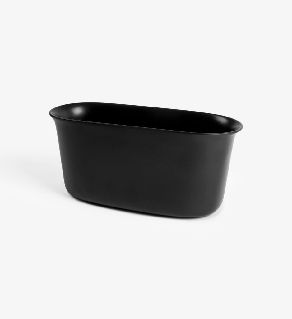 In Scandinavia and around the world, fresh herbs plants are sold in simple black plastic containers, which of course best matches the dark soil inside. Hence, the Smaller Objects herb pot is glazed in matt black. Just slip the newly bought herb, with its container, into the herb pot for a quick and tidy result with no need to re-plant.