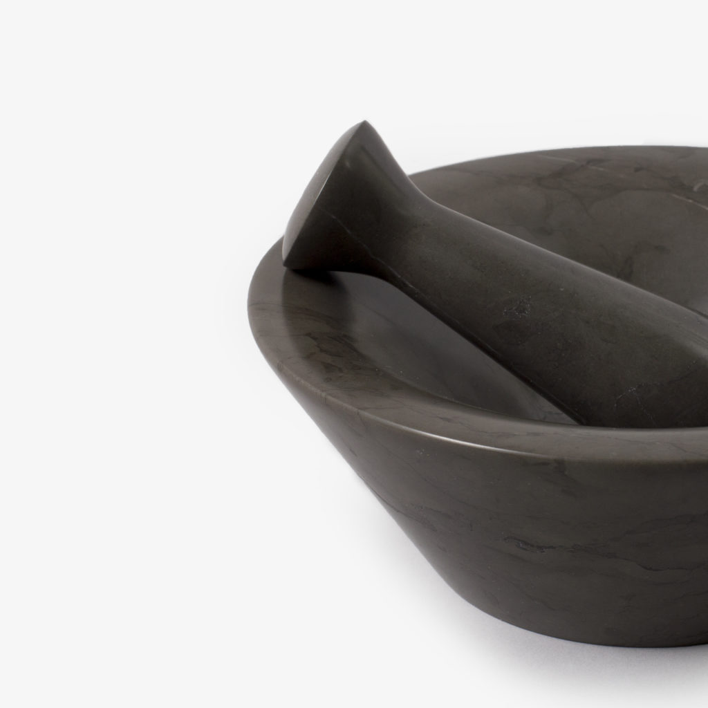The club end of the pestle is ideal for crushing and, if reversed, the handle end is ideal for grinding. When the pestle rests the handle end is stabilised by the soft curve of the mortar and aligns with the rim, avoiding sticking out and getting caught by your sleeve.