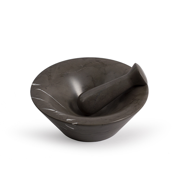 A mortar and pestle made by craftsmen in the ancient city of Altamura, right at the heel of the Italian boot. The mortar is solid and stands firmly on the countertop while handling the pestle. The sinuous bowl section eases the transfer of your freshly made pesto onto your spaghetti, and is as pleasing to the touch as it is to the eye. The satin polish makes it easy to clean.